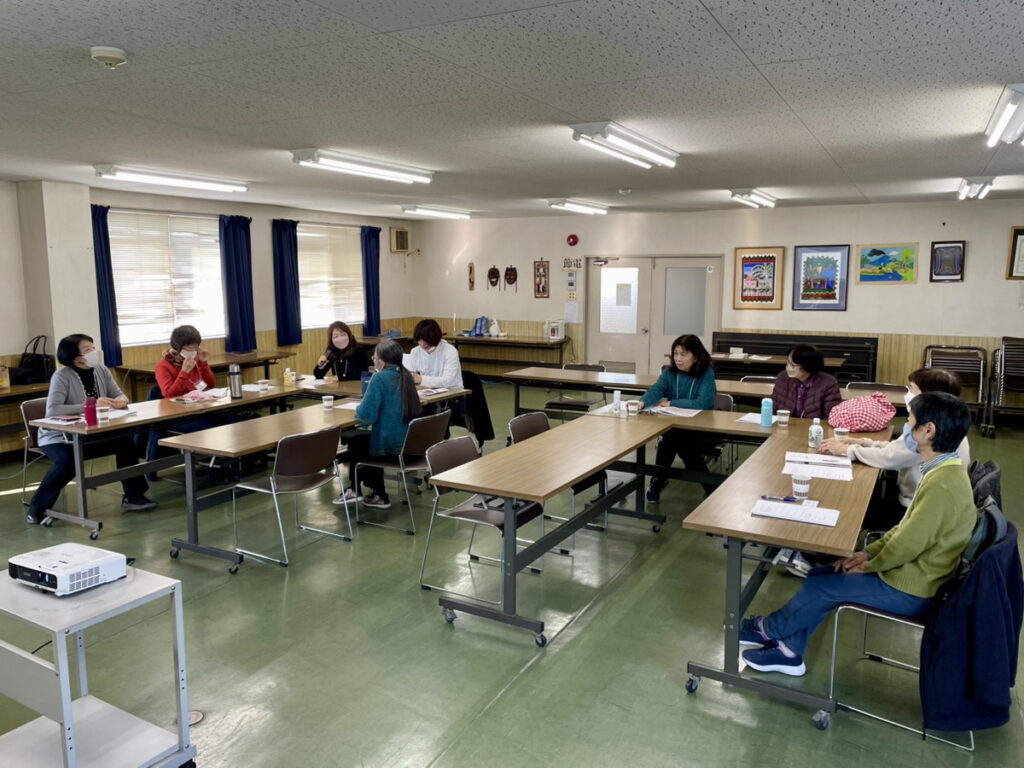 前半は「ワーカーズ・コレクティブとは」の講義と関西のワーカーズ紹介、後半は「人生100年時代のライフデザイン」と題してワークショップを行いました。ワークショップでは、ライフラインチャートを使って、自分の人生を振り返り、やってよかったこと、これからやりたいことを出し合いました。洋裁が得意なのでこれを生かして何かしたい、近隣の方のちょっとしたお手伝いをしたい、今やっているグループ活動を見直したい、配送の仕事の経験を生かしてリサイクルショップをしたい、介護の仕事がしたいなどの声が聞かれました。