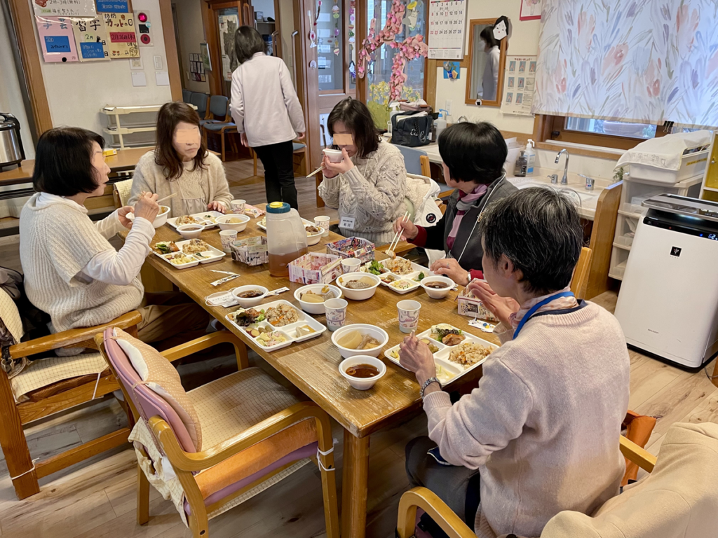「キッチンよりあい」の7品目の料理を3つテーブルに分かれて頂きながら、現在ワーカーズがかかえている問題点などをテーマにして、楽しい会食をしました。